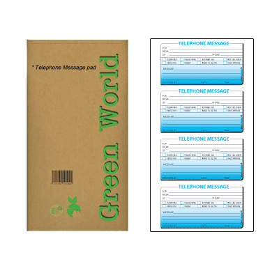 Printed out of NCR 2 ply paper White and Yellow (any other colour possible). Printed in two colours, perforations on the first copy. One white board with a perforation to remove from the book and keep under each set to prevent the image passing to the other copies.