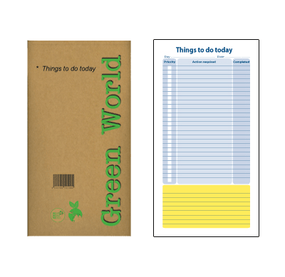 Printed out of 80gsm White wood free paper with two colour printing. Perforated and bound in