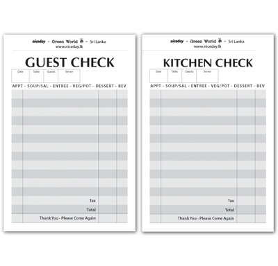Order for the kitchen and bill for the client in one Produced : NCR paper or NCR board